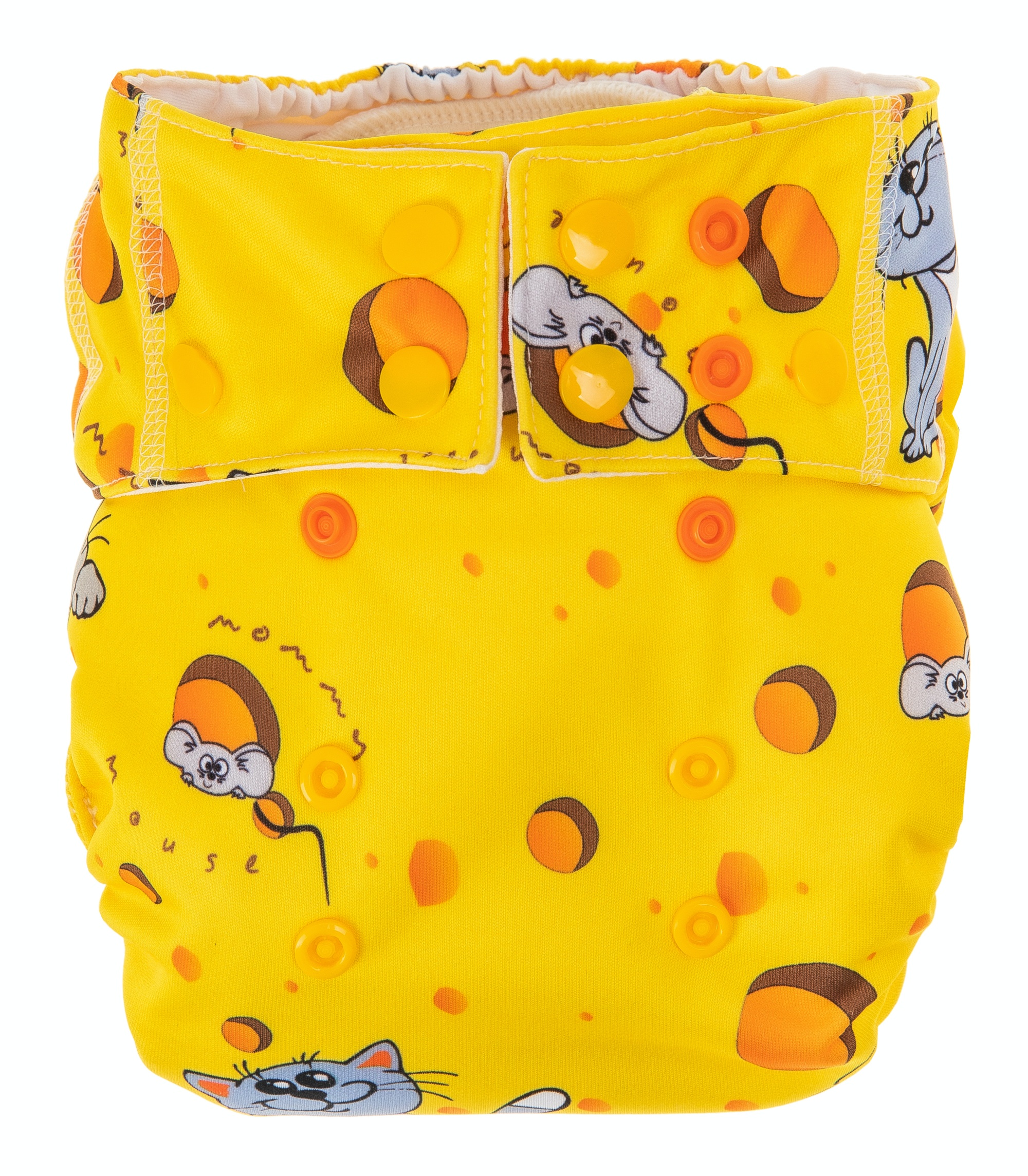The entire diaper has been very carefully designed. The diaper consists of a colourful, waterproof PUL fabricon which the absorbent part of the diaper is sewn into.