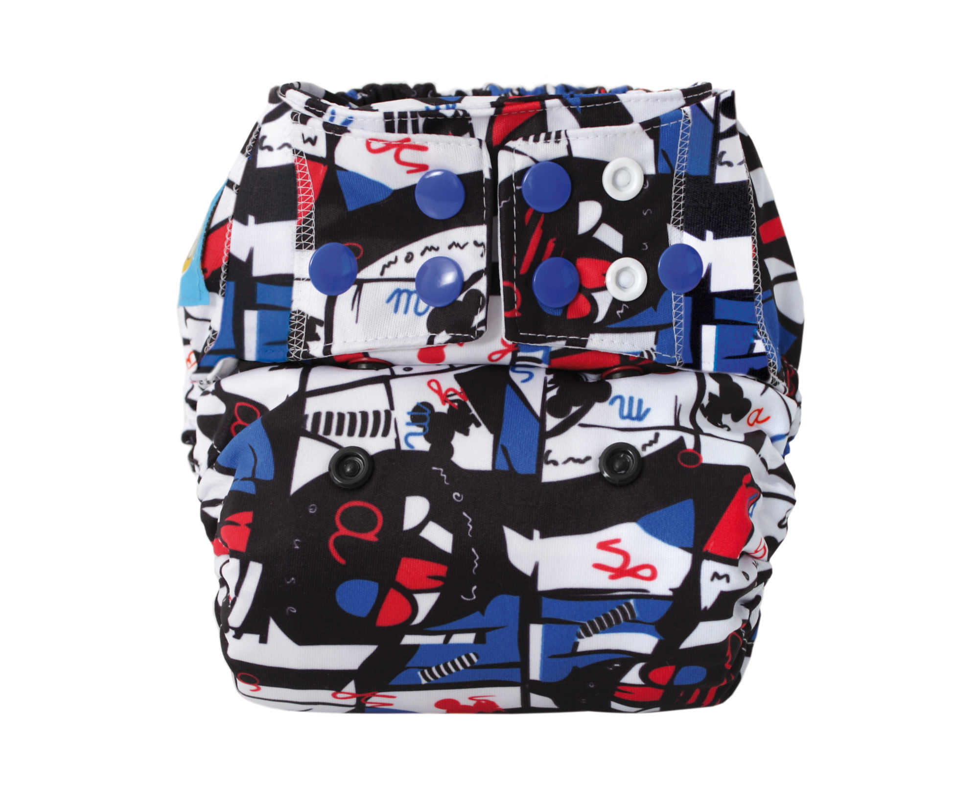 The entire diaper has been very carefully designed. The diaper consists of a colourful, waterproof  PUL fabricon which the absorbent part of the diaper is sewn into.