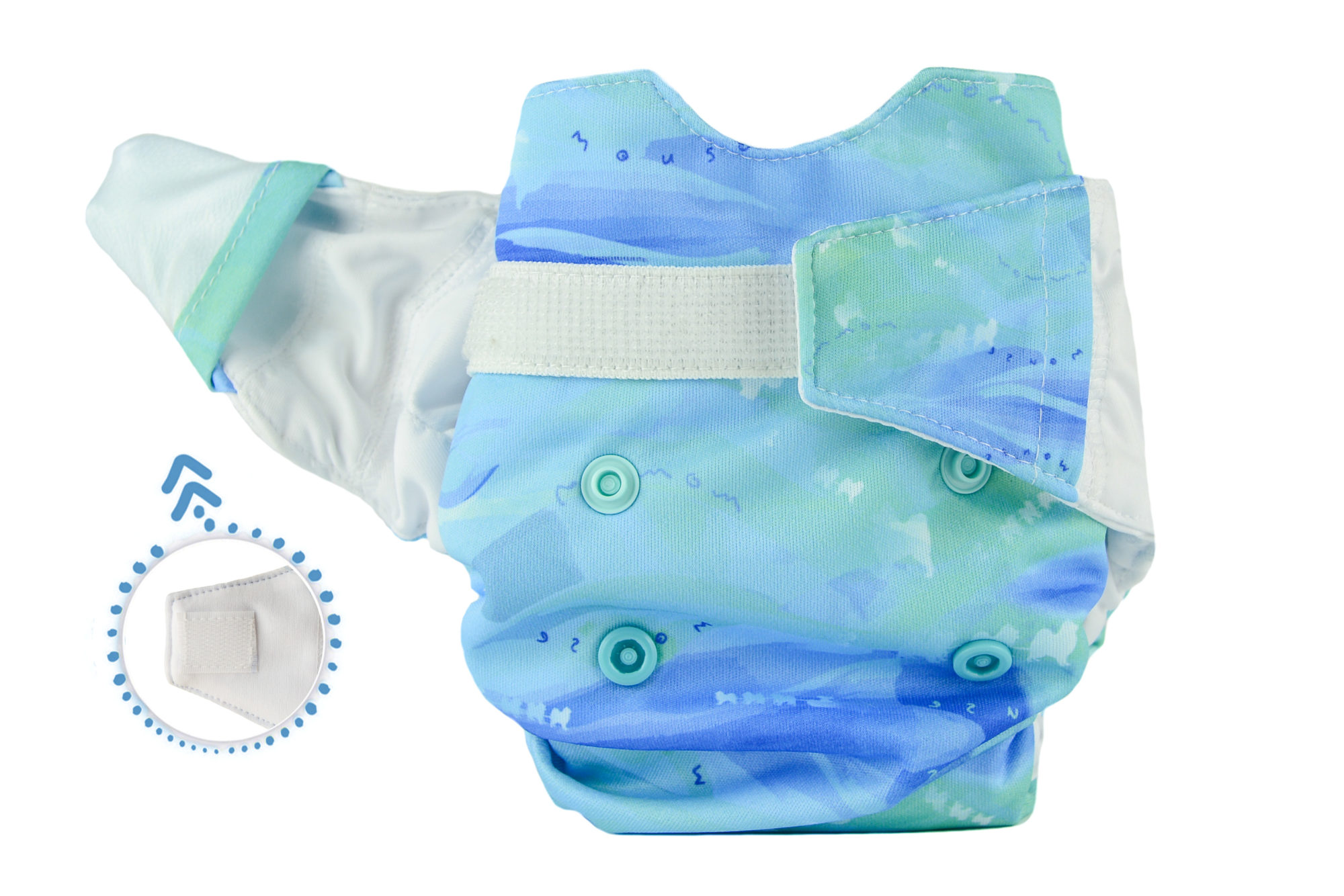 AIO Diapers with Velcroflap closures have an outer protective pocket that protects the Velcrowhenwashing and drying.