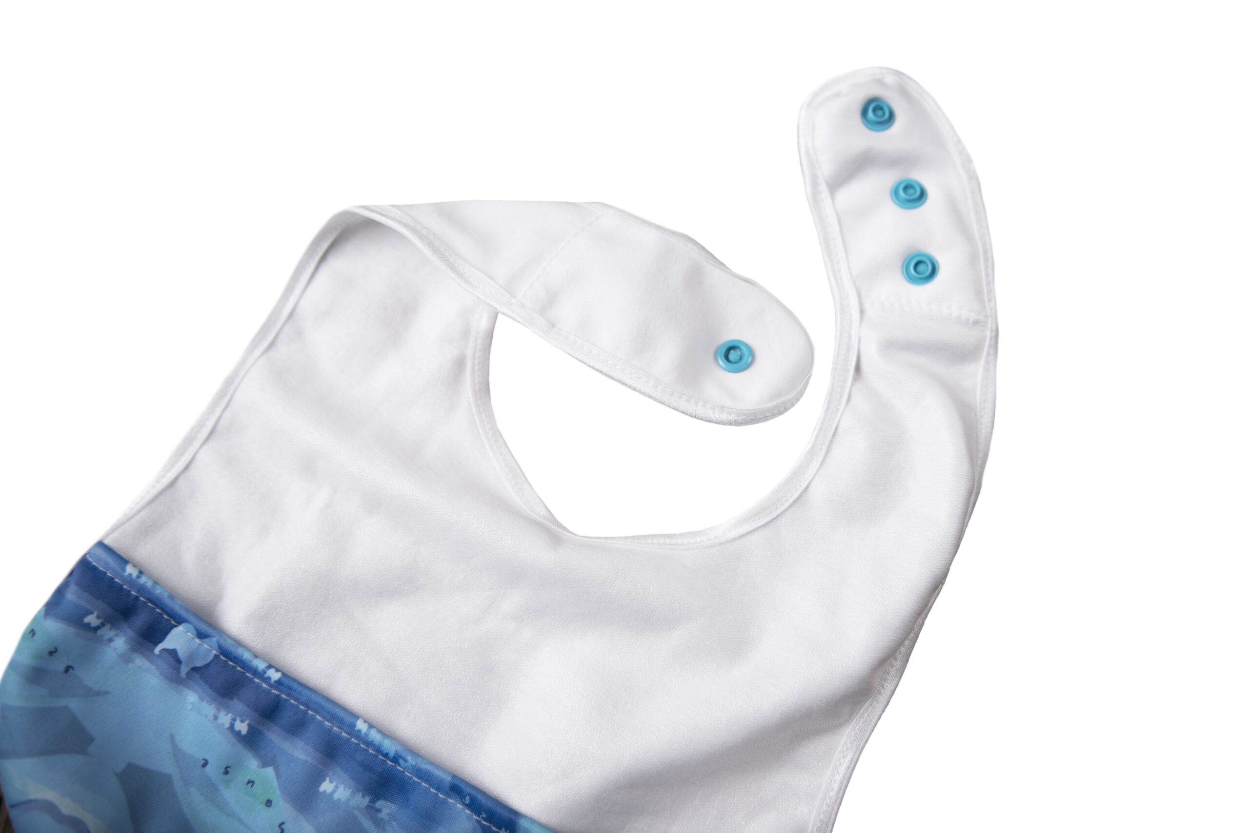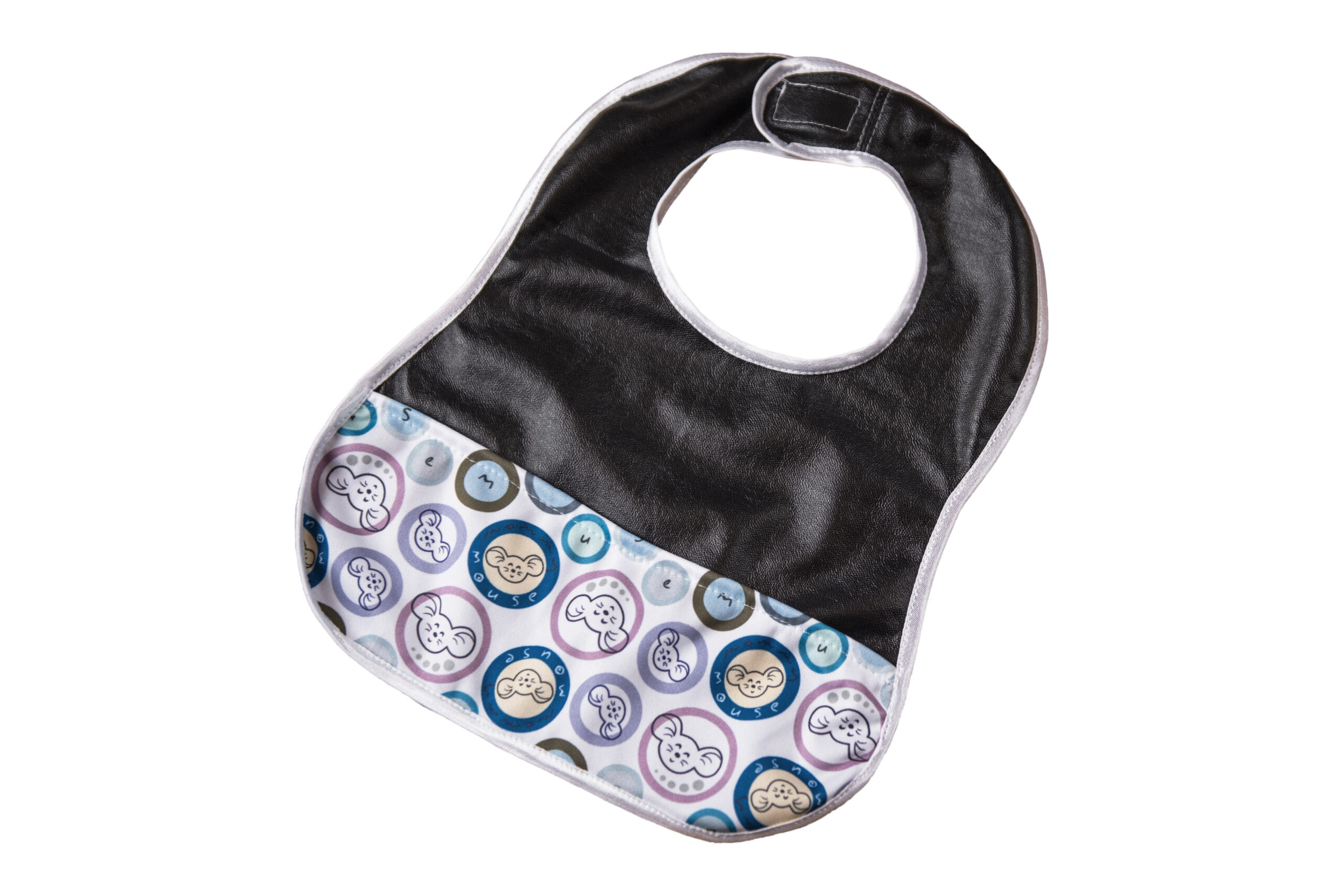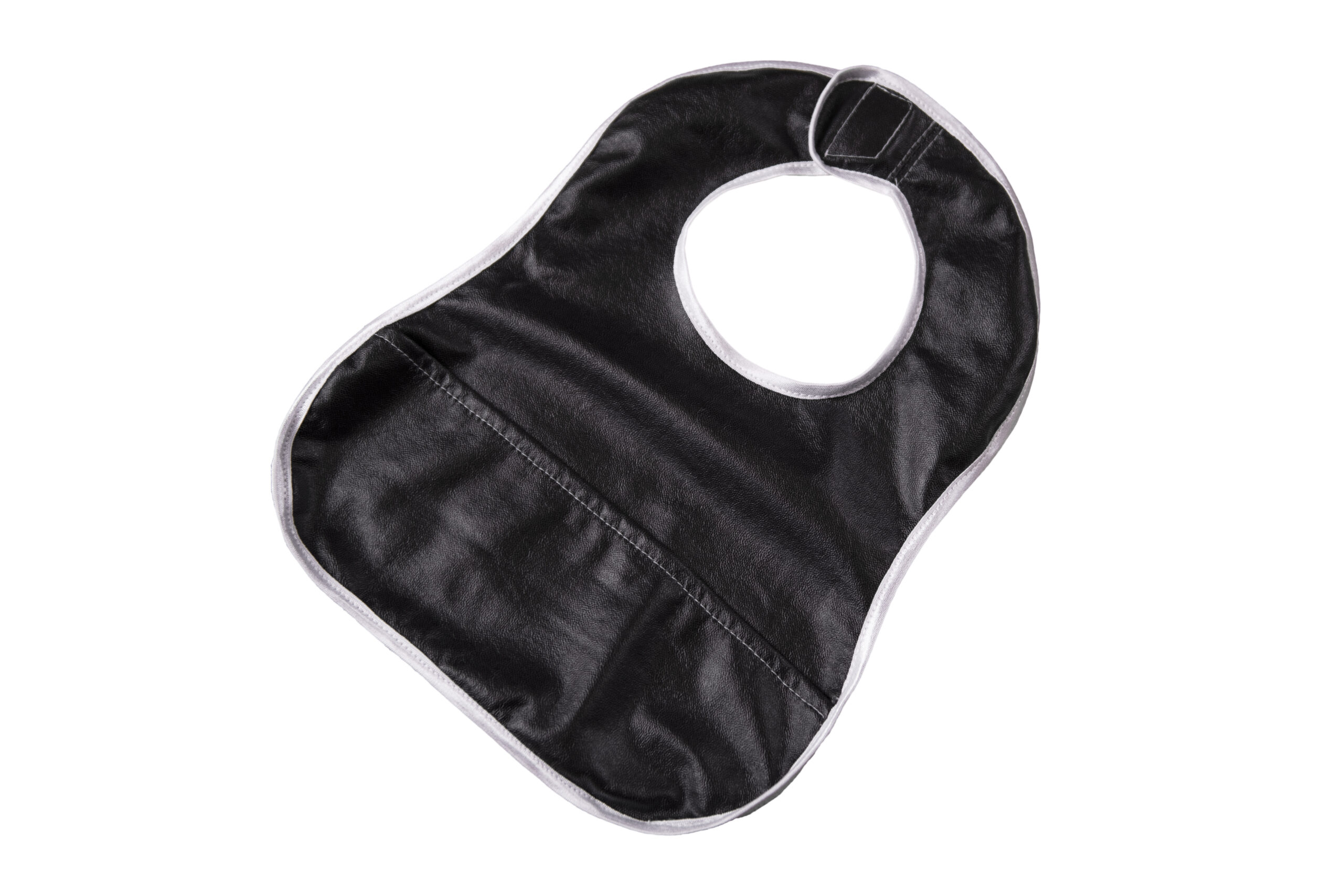 The bib is fastened with snaps. If you want to replace it with Velcro, please contact us!
