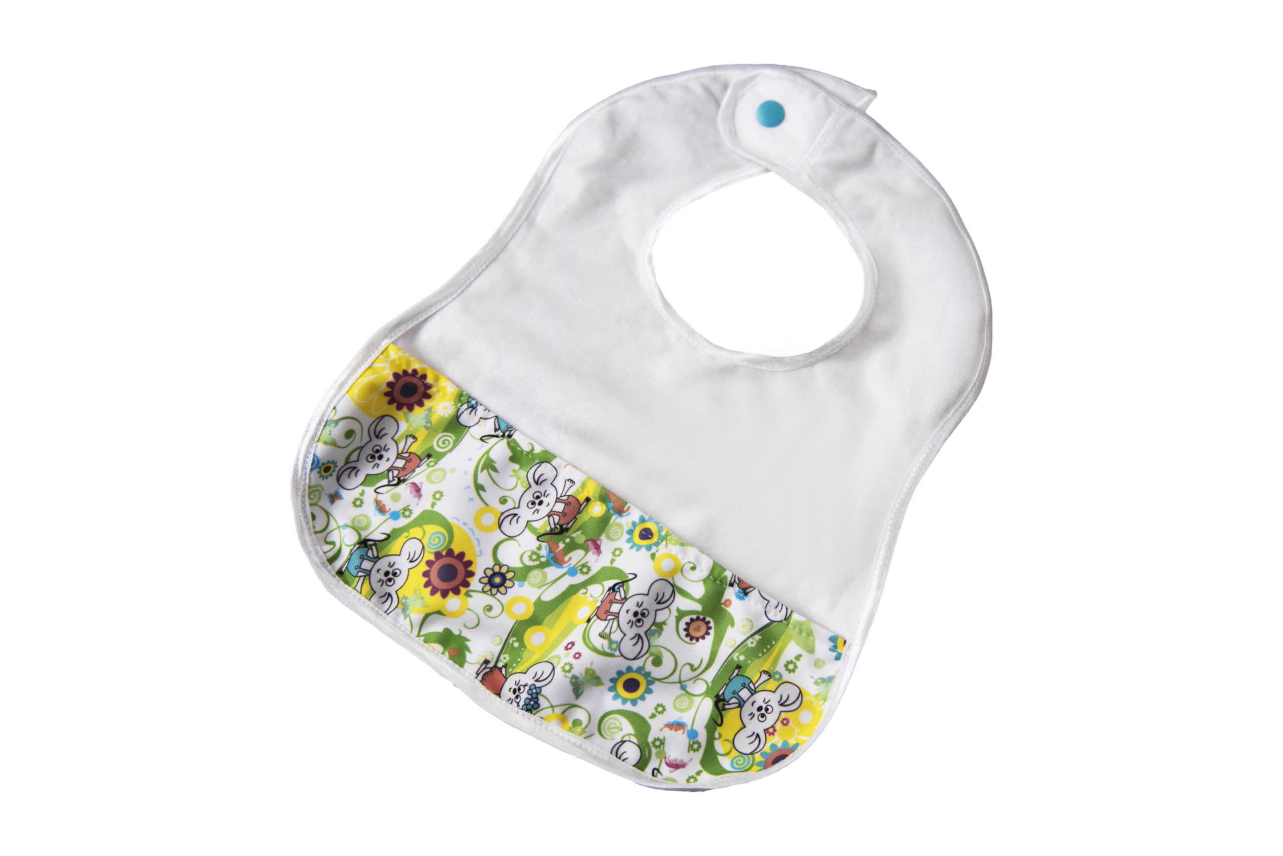 The pocket serves its purpose when food falls off the fork or simply when your baby drinks water. The content is held within the pocket thereby protecting clothes and floor against unnecessary dirt. The pocket bends far from the bib easily catching the falling food. When away from home it’s a perfect solution to secure leftovers.