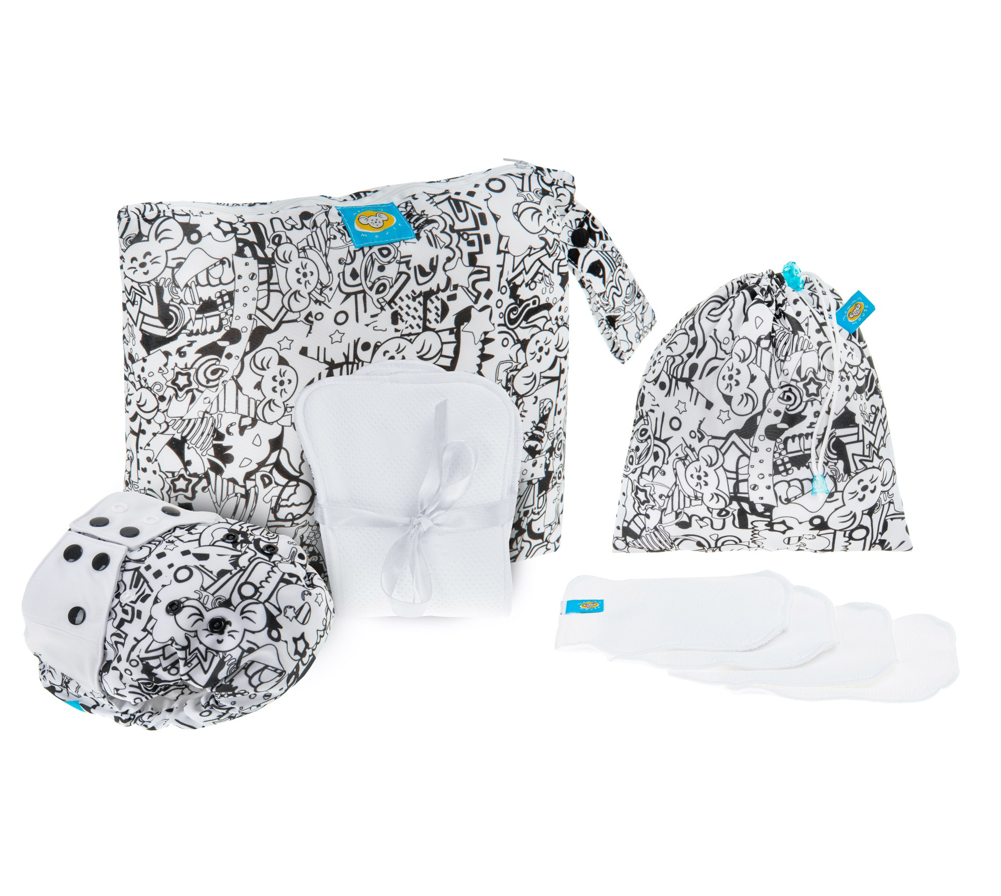 - 1x mini bag for reusable wipes and 5 reusable bamboo wipes (bag dimensions: 20cm x 18cm)