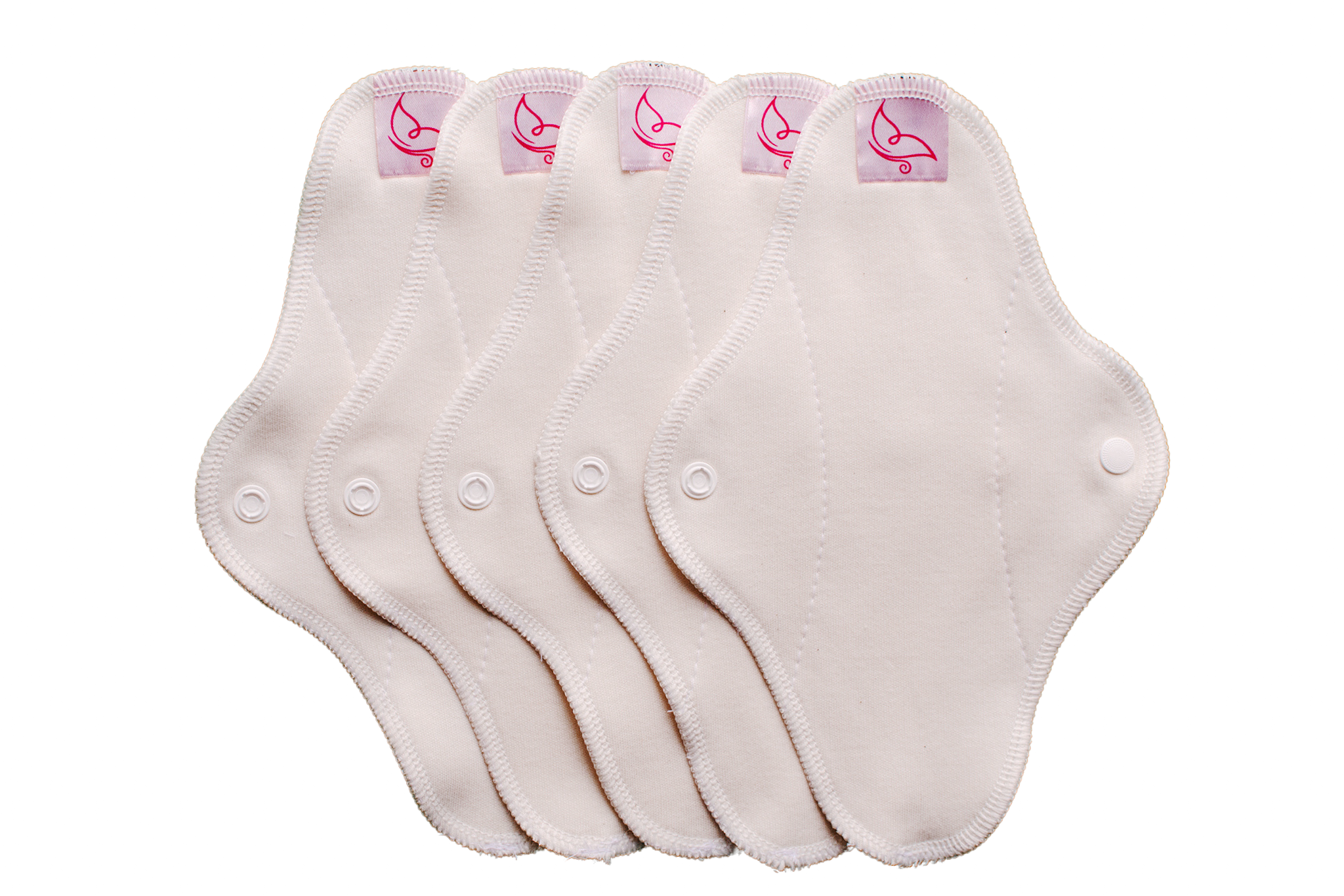 The reusable sanitary pad consists of several layers of cotton joined together to provide intimate protection. The inner layers absorb moisture and keep you dry. Snap fasteners securing the sanitary pad to the underwear are located on the protective wings.