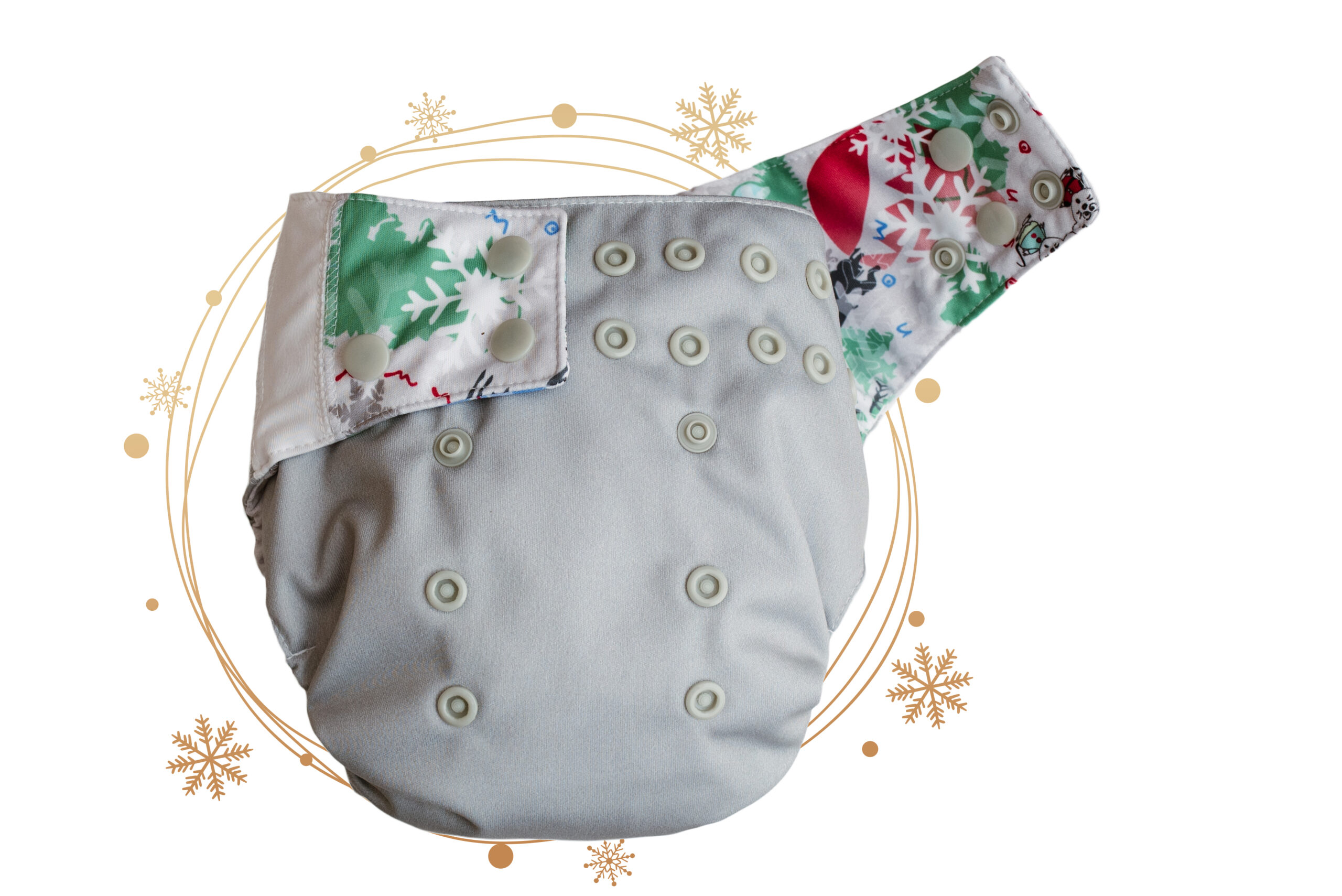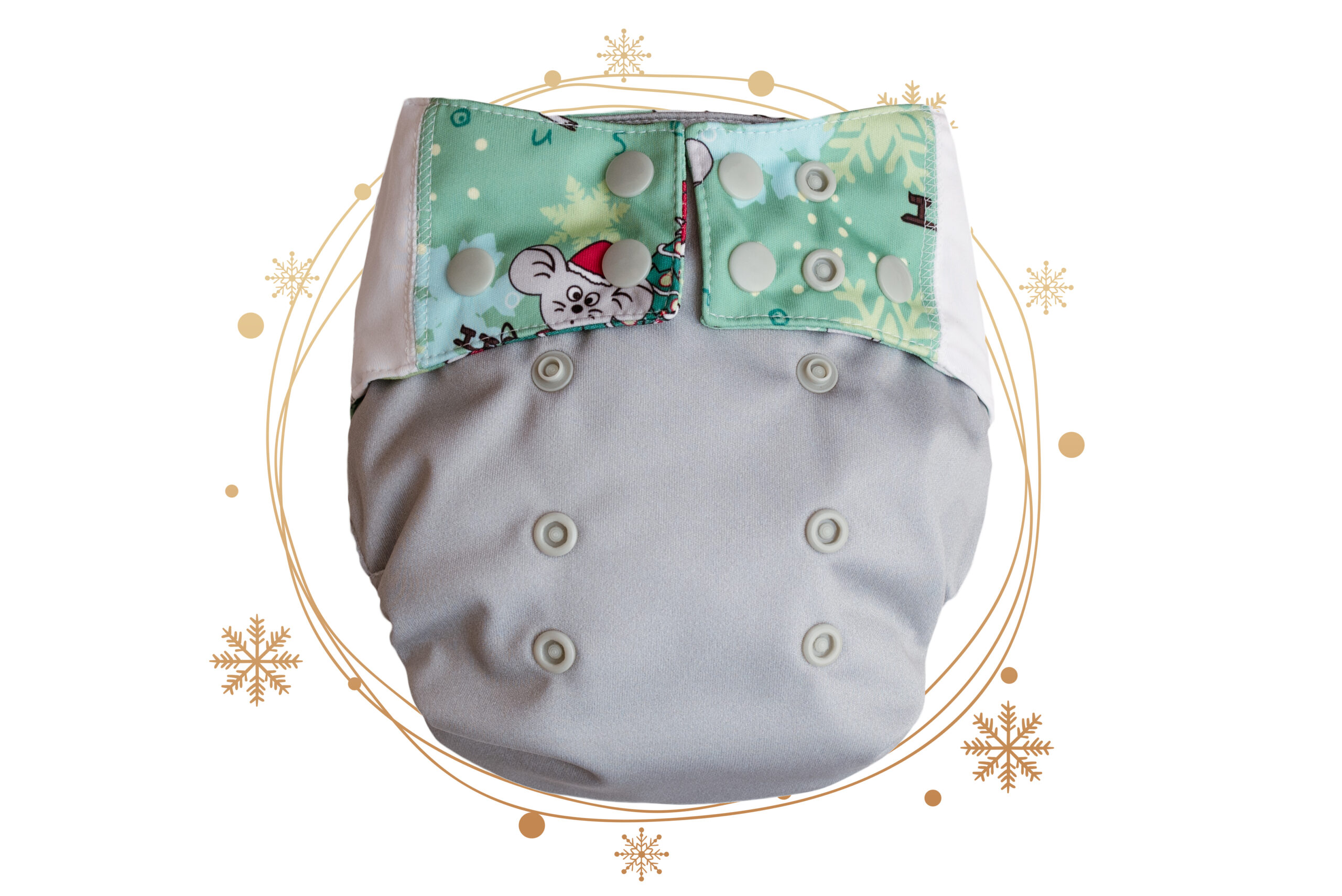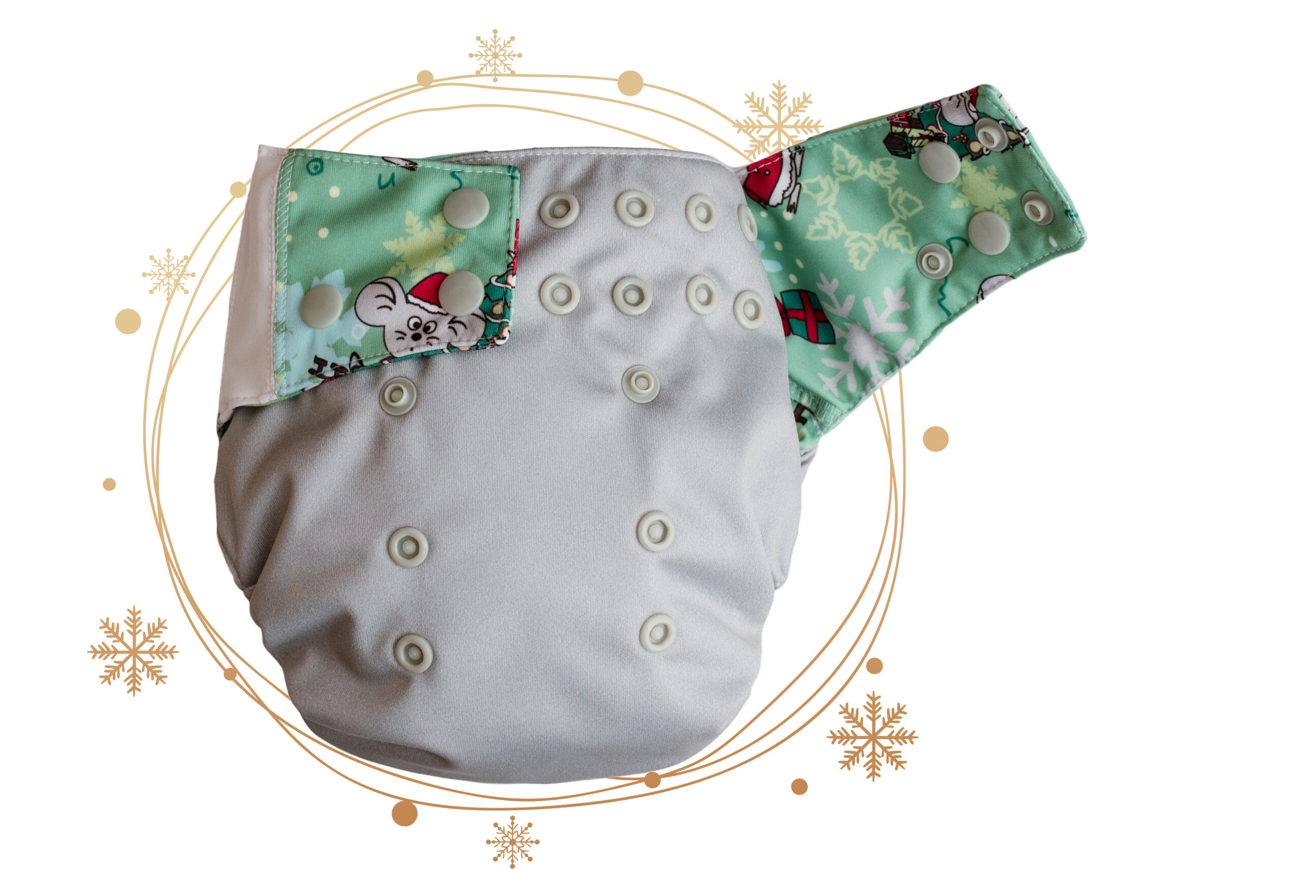 THE CHRISTMAS LARGE GIFT that is 4 pocket diapers in Gray, Green, Blue Christmas patterns will be a perfect addition to your child’s wardrobe or may as well serve as a gift designed in a modern and eco style.