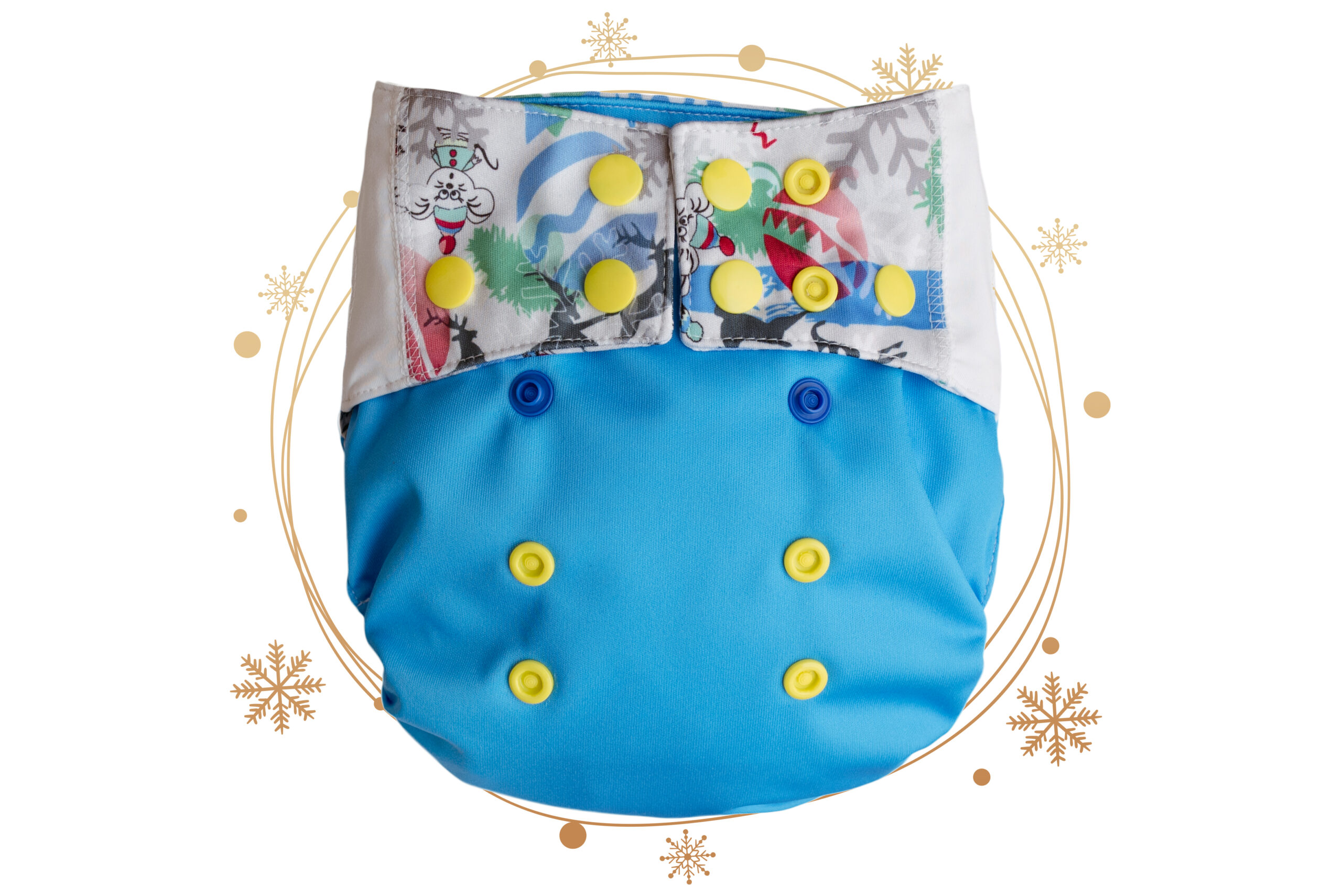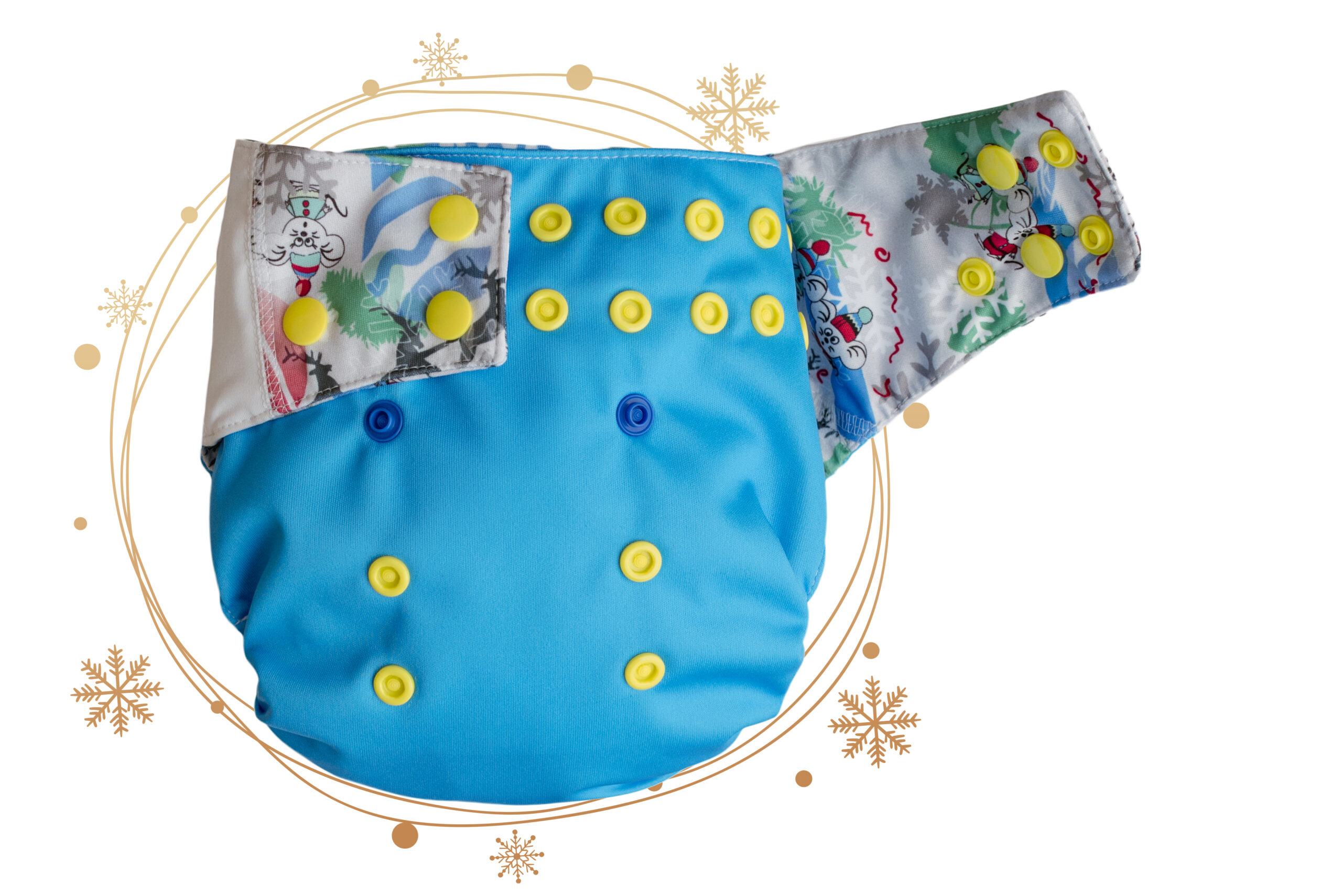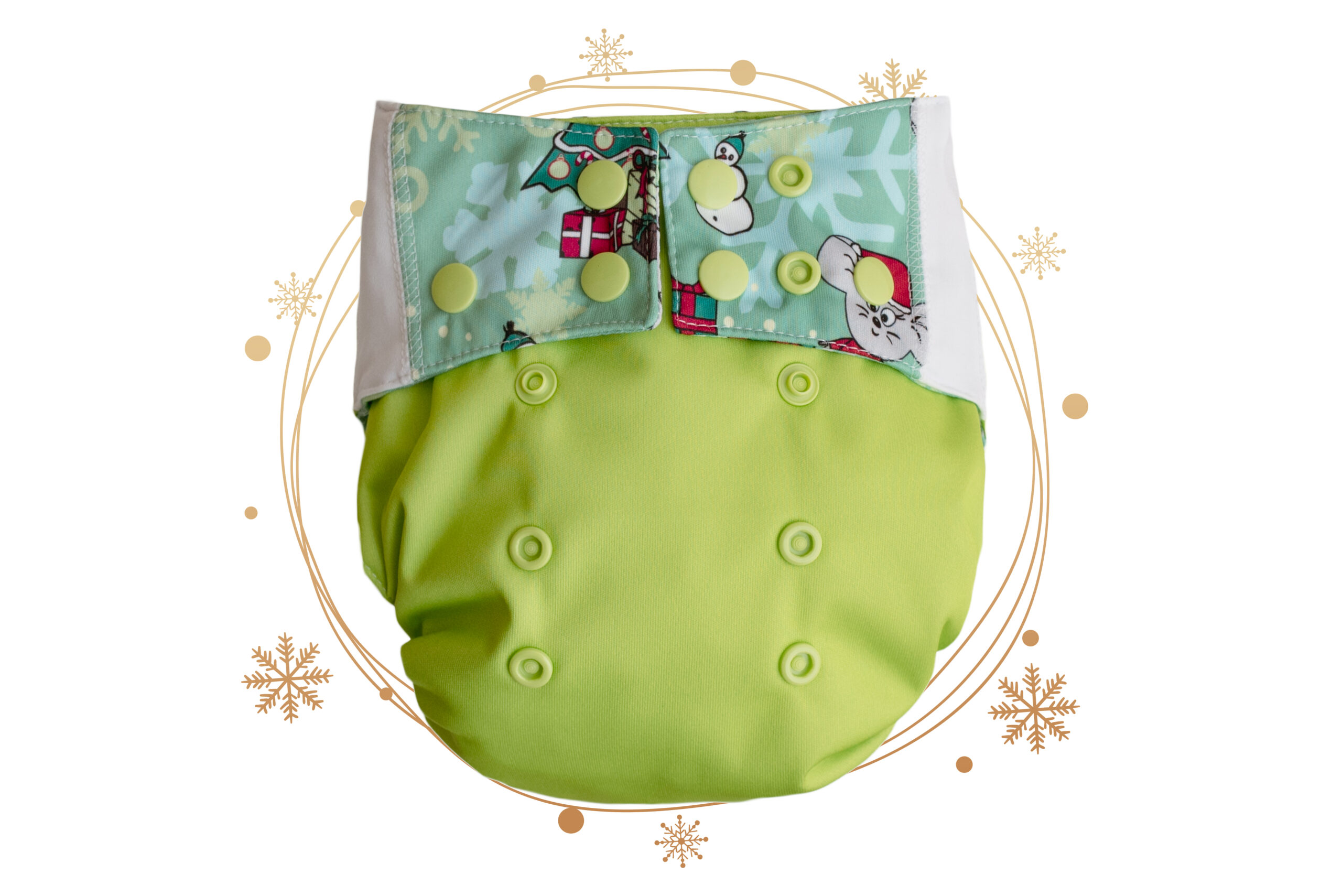 THE CHRISTMAS LARGE GIFT that is 4 pocket diapers in Gray, Green, Blue Christmas patterns will be a perfect addition to your child’s wardrobe or may as well serve as a gift designed in a modern and eco style.