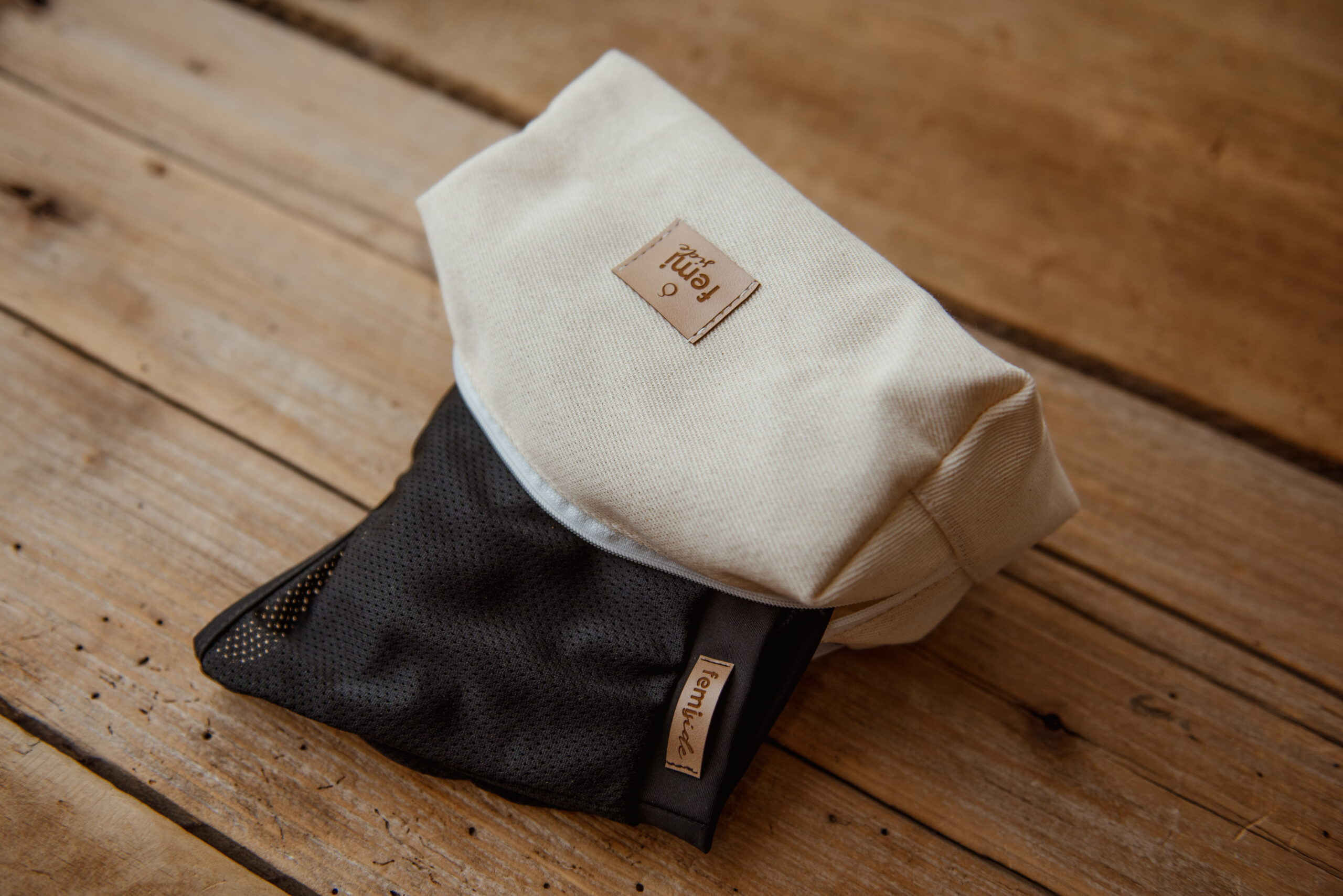 - Set of 3 pairs of menstrual underwear and a cotton, waterproof zippered cosmetic bag with additional pockets.