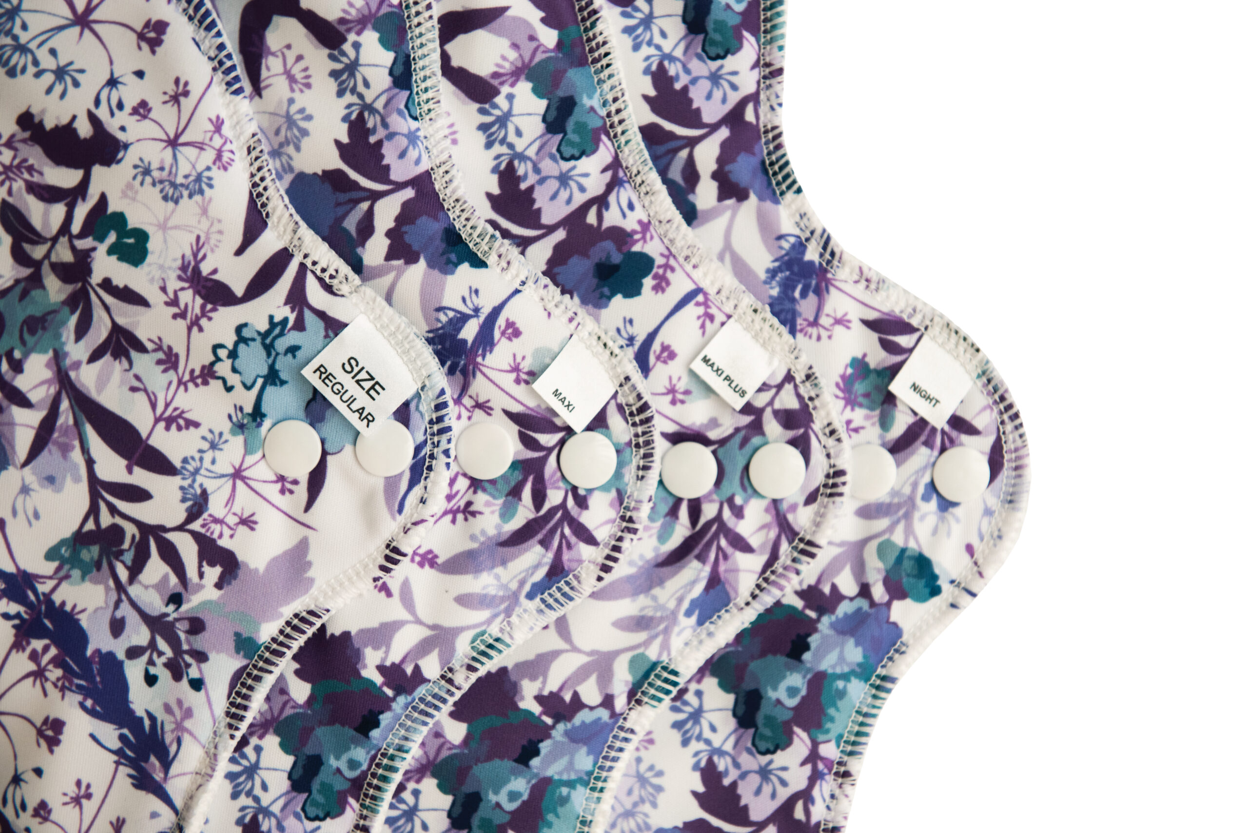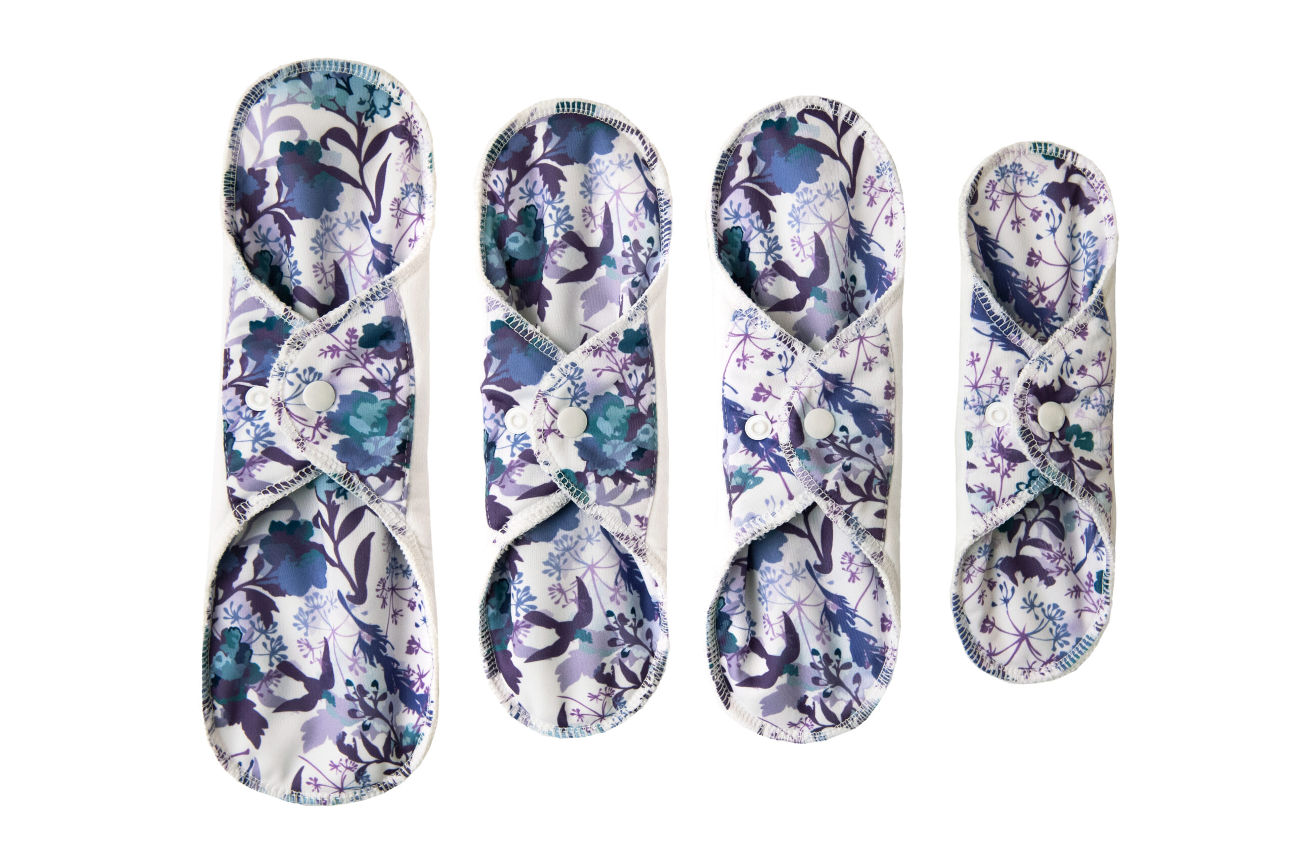 The eco sanitary kit consists of 4 sanitary pads available in sizes: