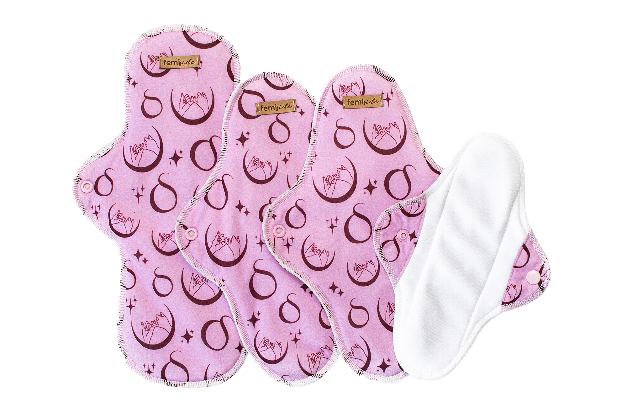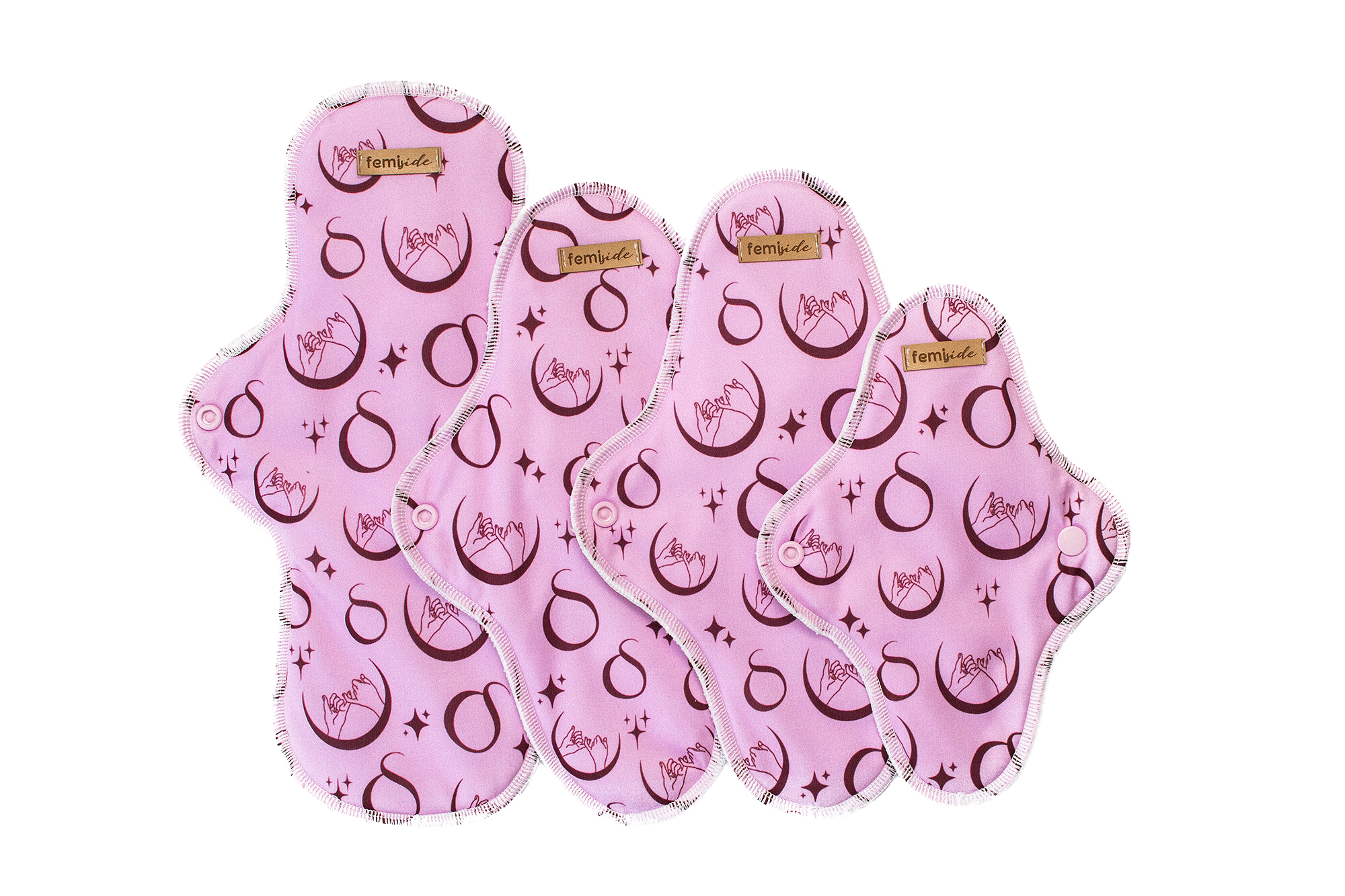 The eco sanitary kit consists of 4 sanitary pads available in sizes: