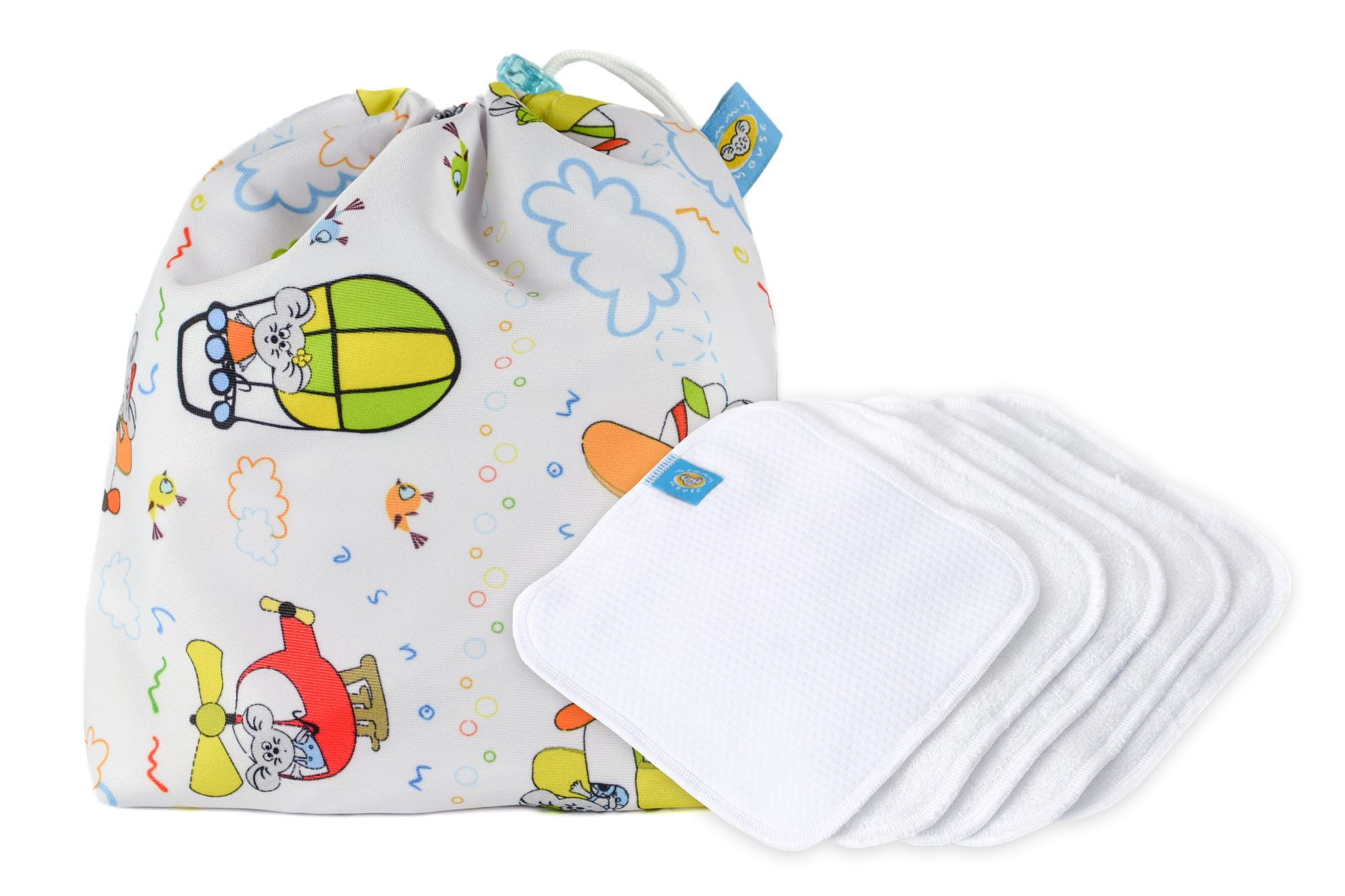 The two-sided wipes – on one side made of bamboo terry, which perfectly washes the dirty hands or the face of the baby. On the second side they are made of Thermo Mouse material, which gently removes the dirt from the child’s skin. They are perfect for diaper change. When soaked in water, they are an excellent substitute for disposable moist wipes.