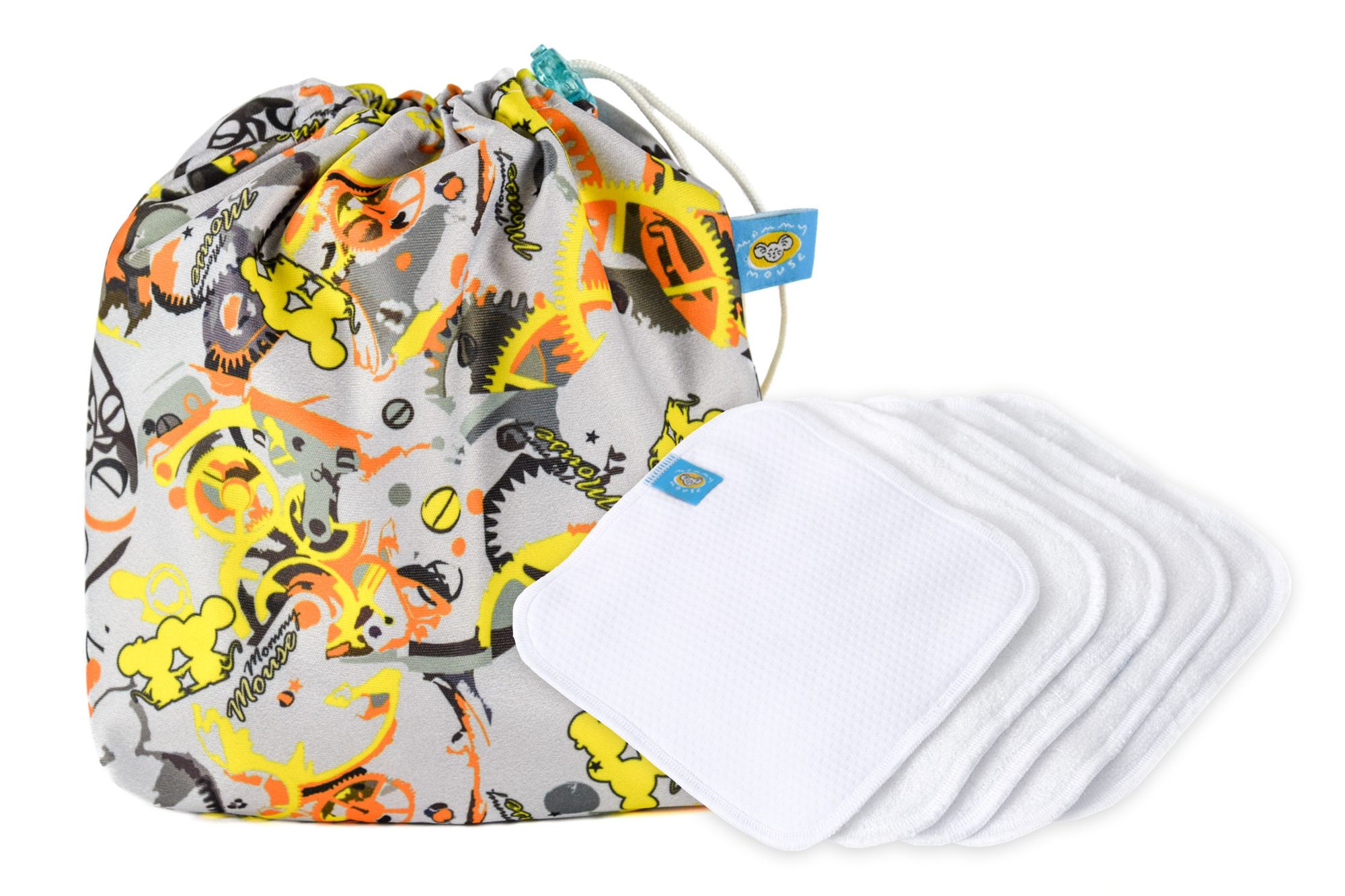 The two-sided wipes – on one side made of bamboo terry, which perfectly washes the dirty hands or the face of the baby. On the second side they are made of Thermo Mouse material, which gently removes the dirt from the child’s skin. They are perfect for diaper change. When soaked in water, they are an excellent substitute for disposable moist wipes.