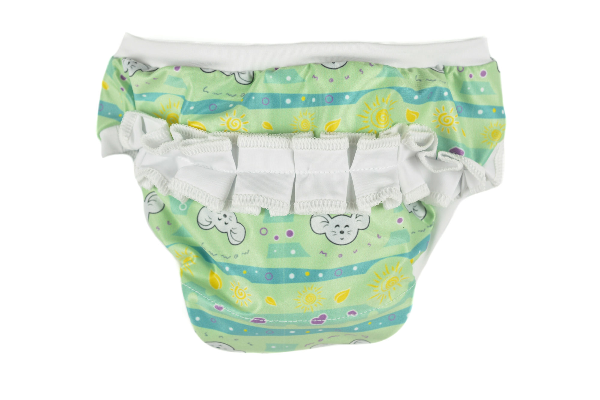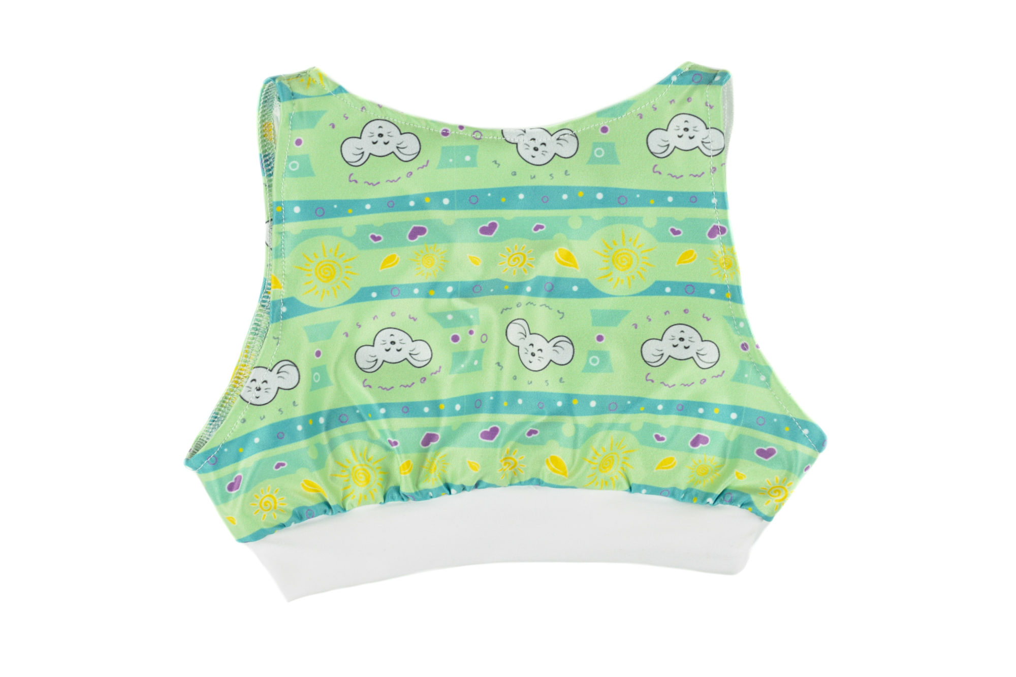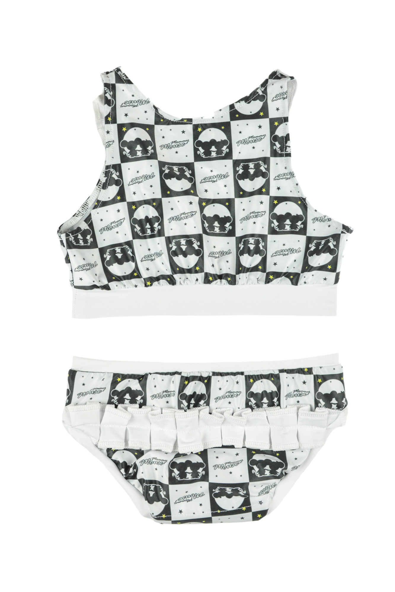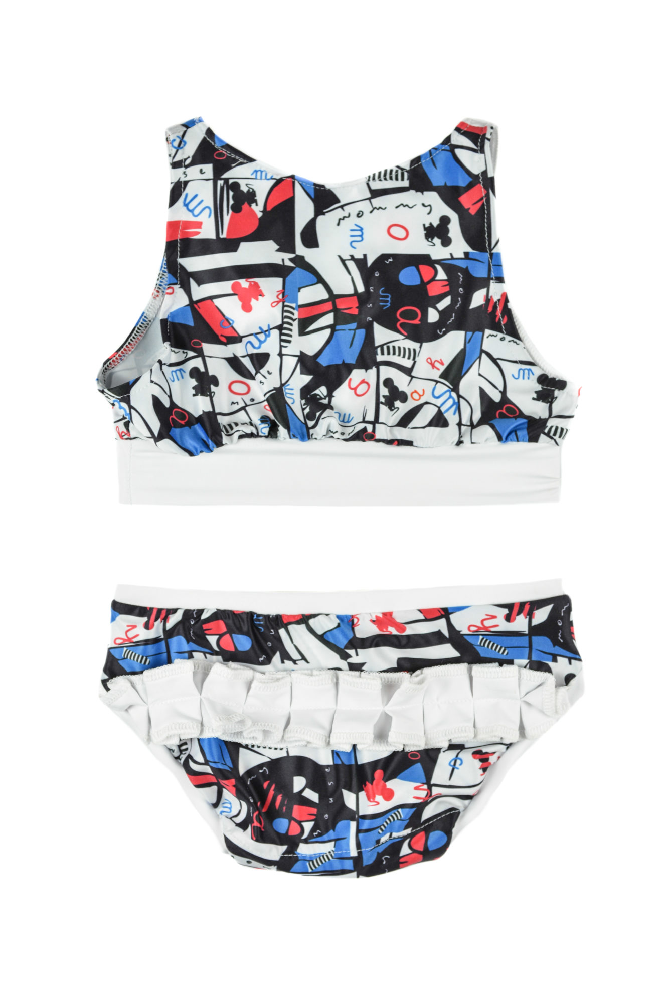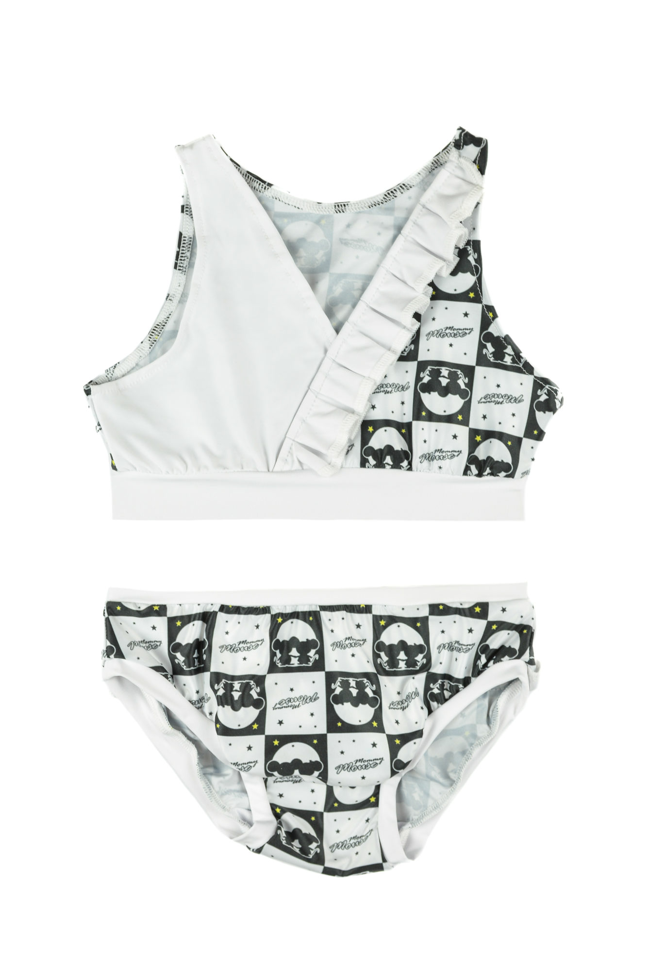 Bikini – short top and figs. Perfect for pool and beaches. A short, decorative blouse (topika) will also perfectly match with short pants or a skirt, giving an attractive swim wear set. The perfect costume adapts to the shape of the figure of a small woman. Decorated with a very girlish frill tutu accent, it adds charm and delicacy to the child’s silhouette.Quick-drying and soft to the touch material provides comfort and resistance to deformation.